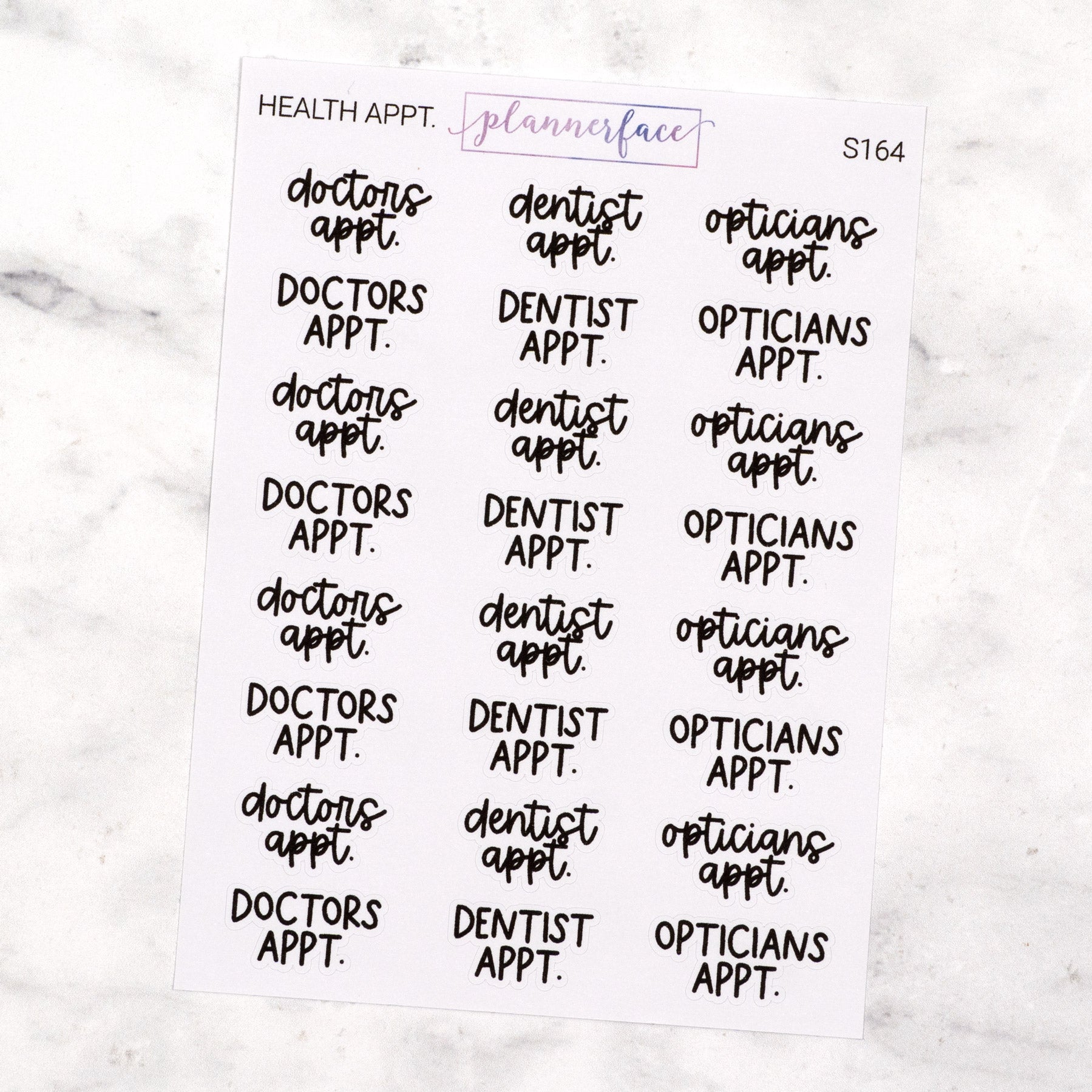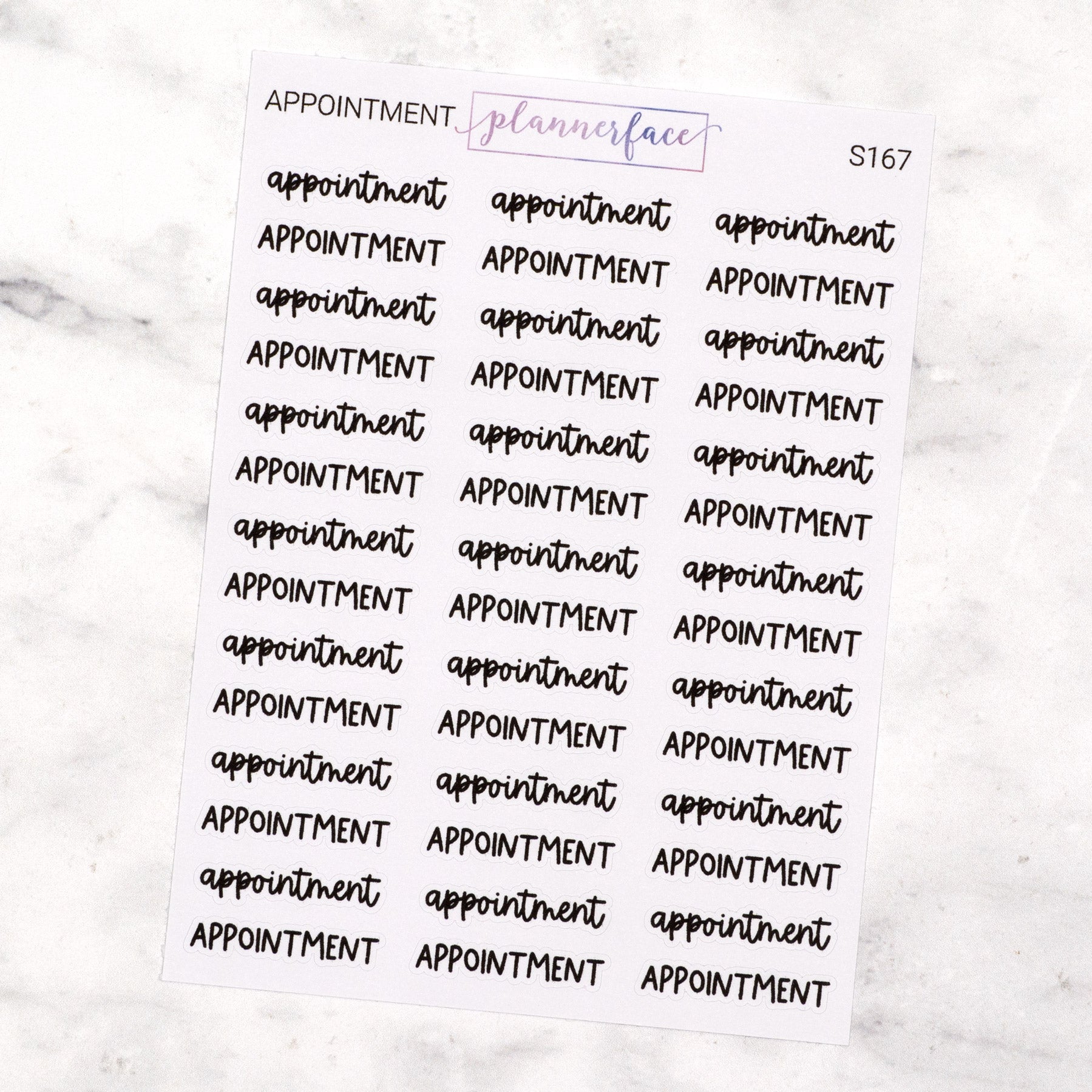 Simplify your planning with our script planner stickers. These lettering sheets feature two fun handwritten fonts, perfect for routine tasks or if you prefer not to use your own handwriting. Need a specific word? Design your own custom script sheets with our Script Designer